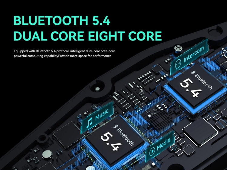 - Dvojitá architektúra Bluetooth 5.4. sa štvorjadrovým procesorom umožňuje veľmi výkonný algoritmus, nízkou spotrebou energie vyniká stabilita do vzdialenosti až 3 km