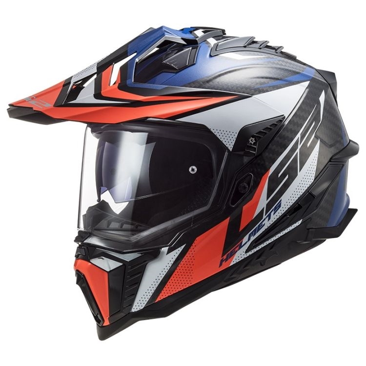 LS2 MX701 EXPLORER CARBON FOCUS dobrodružná prilba modrá/biela/červená veľkosť XXL