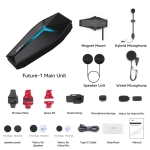 Intercom FUTURE 1 je vybaven funkcemi pro pohodlné užívání. Kromě čtyř tlačítek můžete ovládat tento intercom pomocí AI hlasového ovládání, například nastavovat hlasitost, přepínat režimy, a nastavovat další volby, to vše offline bez nutnosti připojení k internetu. Funkce redukce vnějšího hluku ENC (Environmental Noise Cancellation) umožňuje kvalitní reprodukci až do rychlosti 180 km/h. Jezděte celý den, za deště i za slunce, díky 16-24 hodinové výdrži baterie, rychlému nabíjení přes USB-C a vodotěsnosti IPX7 – tento intercom je připraven na jakékoli počasí.