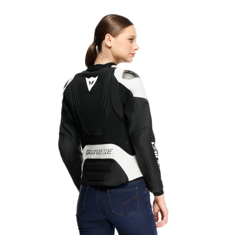 Evoluce nejprodávanější sportovní bundy Dainese, kožená bunda RACING 5 WMN, je určena pro motocyklistky, které jezdí za dobrého počasí a v létě. Tato dámská motocyklová bunda má klasický a sportovní střih a je vyrobena z jemné 1,2 mm hovězí kůže Tutu. Důraz na ergonomii vedl ke studiím jízdních pozic s cílem zdokonalit detaily, které snižují tlak na krk, jako je límec Veloce Racing Neck. Tento design zaručuje maximální pohodlí a pohyblivost díky integraci široké bi-elastické tkaniny S1 a systémů nastavení na bocích. Jízdní komfort se snoubí s vynikající úrovní ochrany. Bunda RACING 5 WMN má certifikaci EN 17092 třídy AA a je vybavena kompozitními chrániči s certifikací CE úrovně 2 na loktech a ramenou. Má také vyměnitelné hliníkové kryty ramen, které zajišťují přirozenější klouzavý pohyb v případě pádu, a vnitřní kapsu pro chrániče páteře typu G. Na základě studií správného střihu lze bundu pohodlně nosit přes airbagovou vestu Dainese SMART AIR, aniž by bylo nutné kupovat větší velikost. Správný střih rukávů zabraňuje posunutí chráničů na nesprávné místo při pádu, což zajišťuje maximální ochranu jezdců za všech okolností.